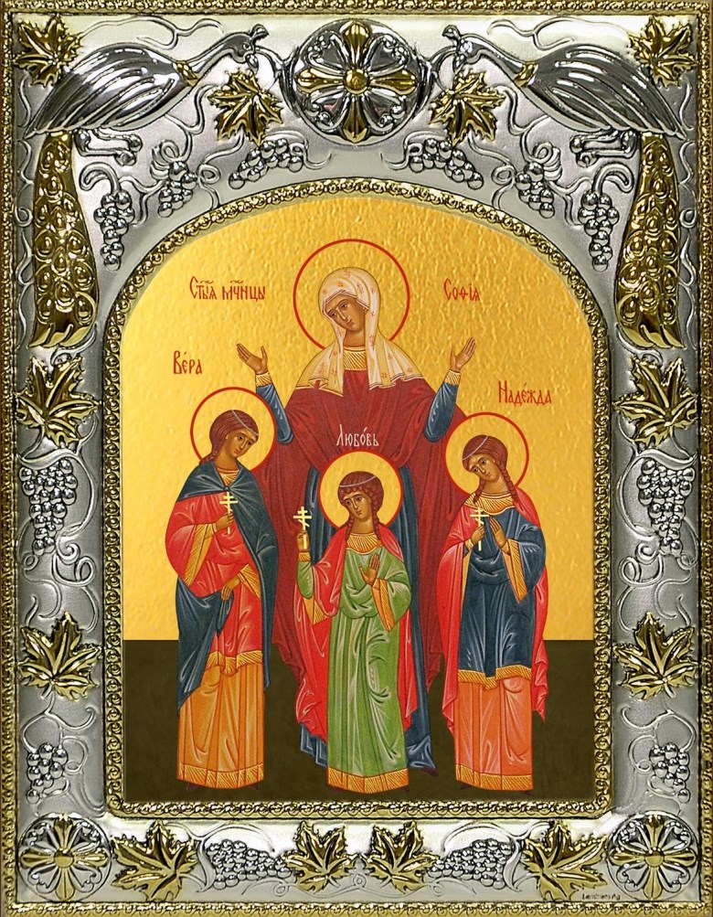 Икона Вера, Надежда, Любовь и их матерь София мученицы, 14х18 см, арт. 24258