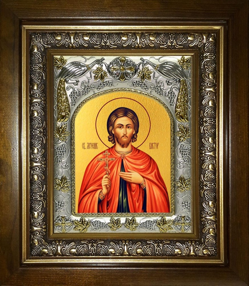 Икона Виктор Коринфский, в киоте 20х24 см, арт. 28576