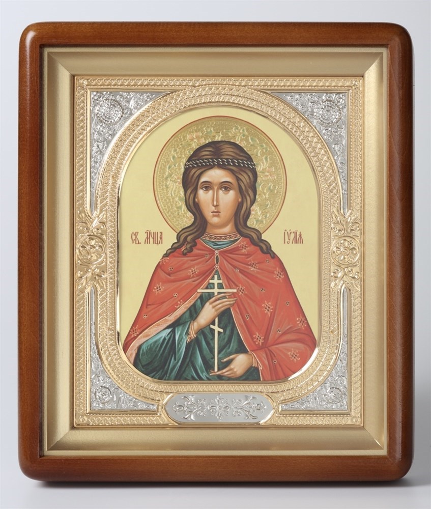 Икона в киоте 18х24 фигурный, фото, риза-рамка частично золочёная, Иулия