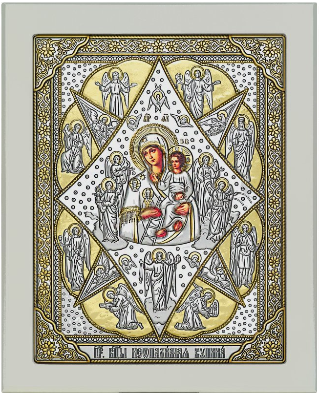 Икона освященная Неопалимая Купина Божией Матери серебряная на дереве позолоченная, арт. 243123