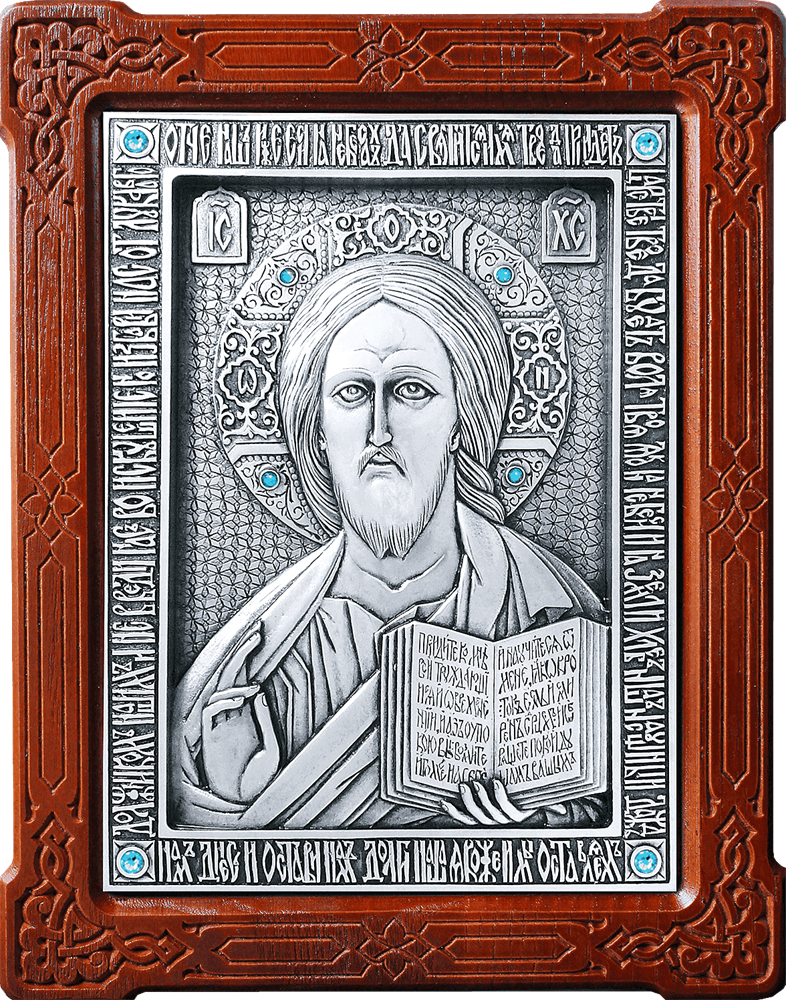 Икона Господь Вседержитель серебряная на дереве, арт. 253315