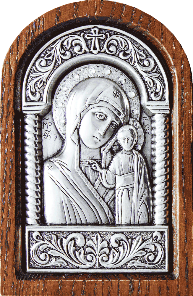 Икона Казанская Божья Матерь серебряная на дереве, арт. 253157