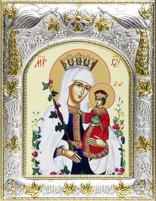 Икона выполнена на дереве профессиональными красками в технике шелкография на сусальном золоте. Лик "Неувядаемый Цвет" покрыт тремя слоями лакачто гарантирует долговечность и защиту изображения. Икона представлена в размере 18х24 сантиметра. Итальянский оклад изготовлен по уникальной технологии из металлической основы и покрыт серебром 925 пробы и золотом 585 пробычто подтверждено производственным клеймом. С тыльной стороны иконы прикреплен сертификат о соответствии. Икона бережно упакована в глянцевую коробку с православной символикой.