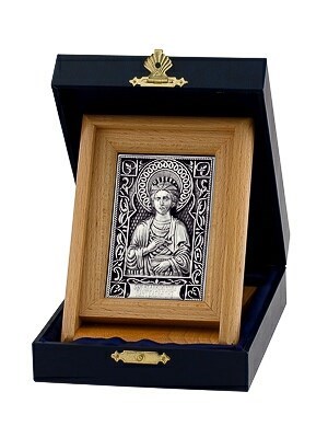 Икона Пантелеймон целитель ювелирная серебряная, арт. 241938
