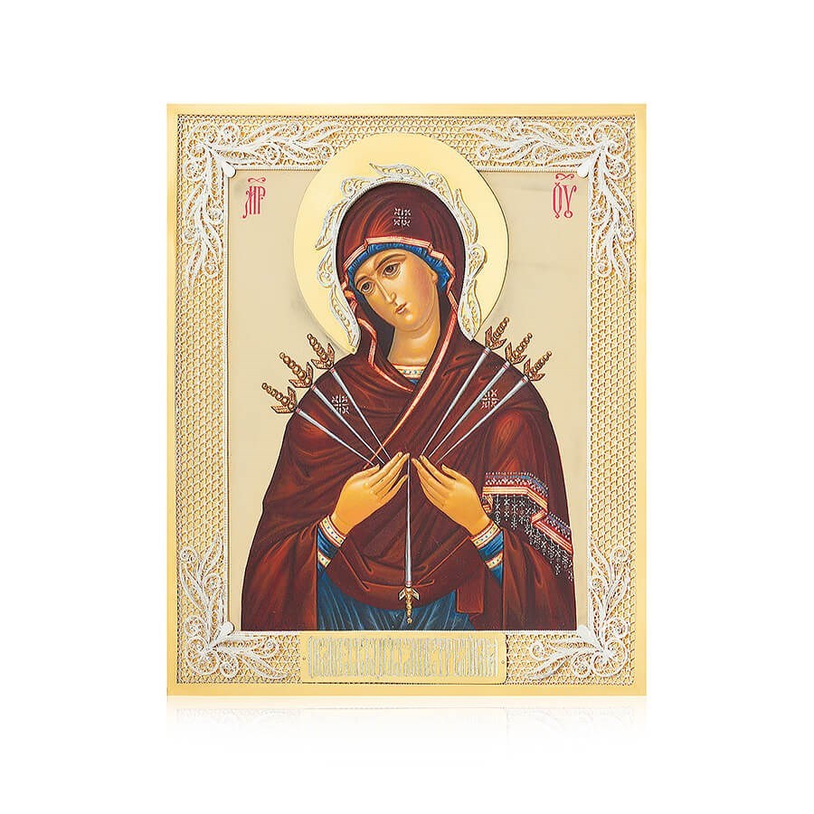 Икона Семистрельная Божья Матерь ювелирная серебряная, арт. 241820