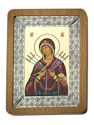 Икона Семистрельная Божья Матерь ювелирная серебряная, арт. 241940