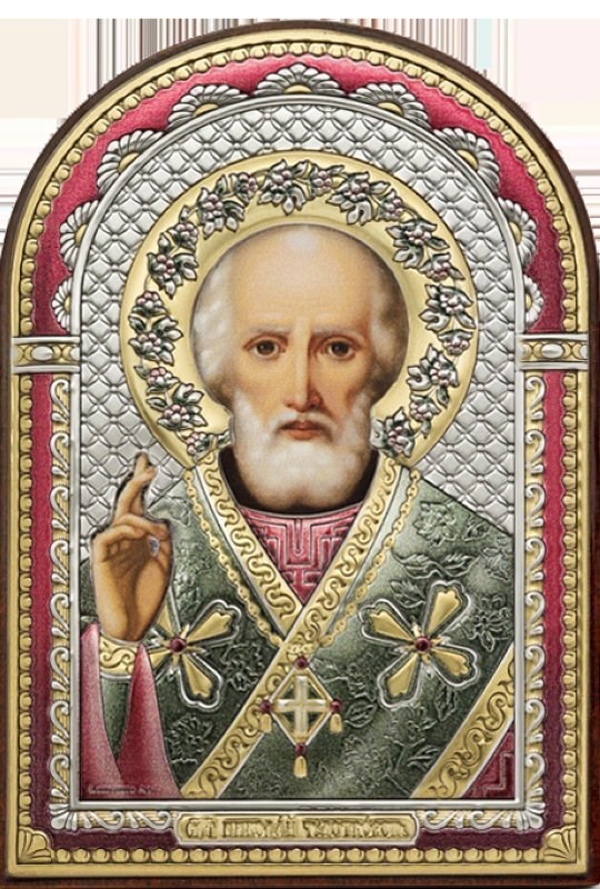 Подарочная икона серебряная Николай Чудотворец на коричневом дереве, арт. 243632