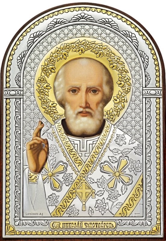 Икона освященная Николай Чудотворец серебряная, арт. 243619