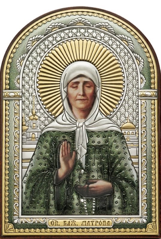 Икона Блаженная Матрона Московская освященная серебряная с эмалью, арт. 243673