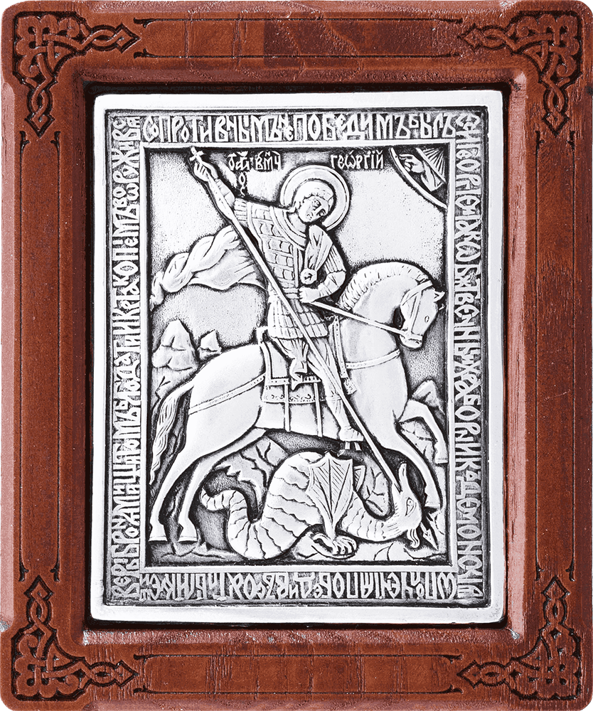 Икона Святой Георгий Победоносец серебряная на дереве, арт. 253198