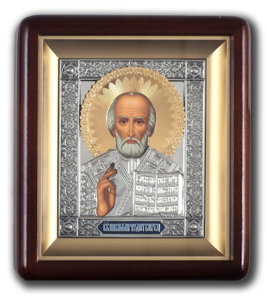 Икона в киоте 11х13 фигурныйтемпераризаникельэмальНиколай Чудотворец 1