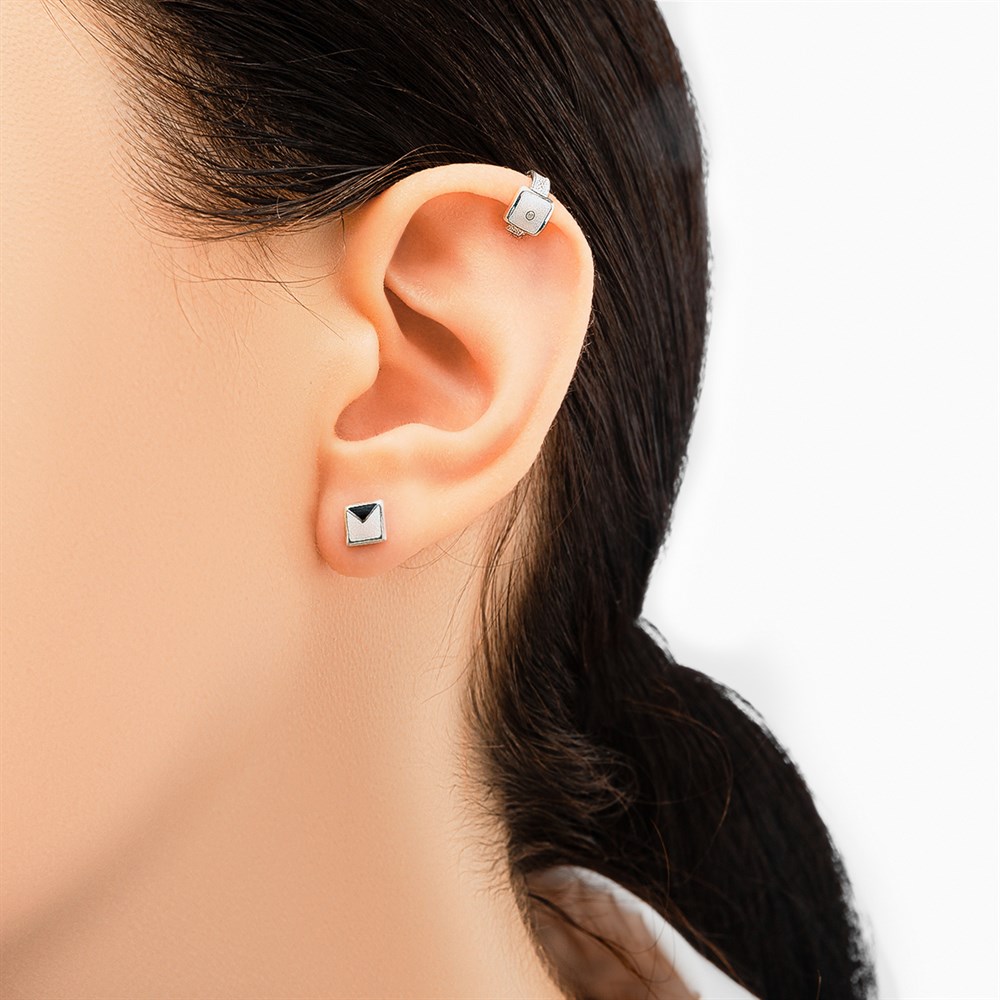 Кафф – это серьга, которая сочетает в себе характеристики и сережки, и клипсы. Украшение крепится либо на мочку, либо на ушной хрящик. Оно хорошо тем, что не требует прокола