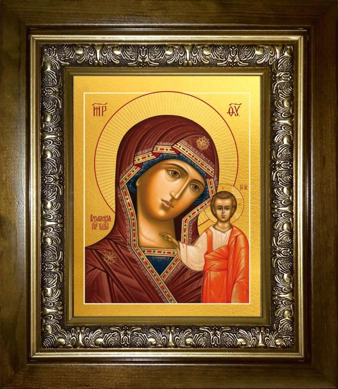 Казанская икона Божией Матери 14х18 в киоте 20х24, арт. km_25_103