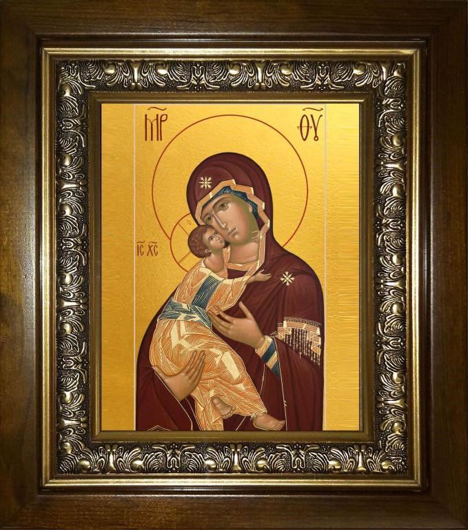 Владимирская икона Божией Матери 14х18 в киоте 20х24, арт. km_25_105