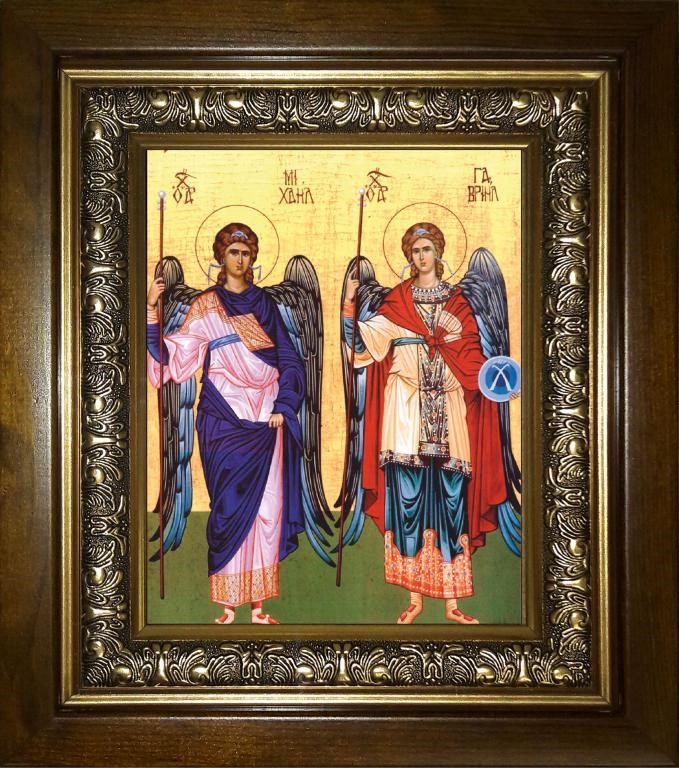 Михаил и Гавриил Архангелы 14х18 в киоте 20х24, арт. km_25_1059