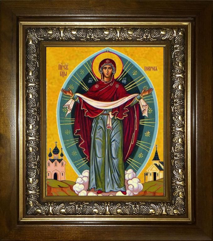 Покров, икона Божией Матери 14х18 в киоте 20х24, арт. km_25_1118