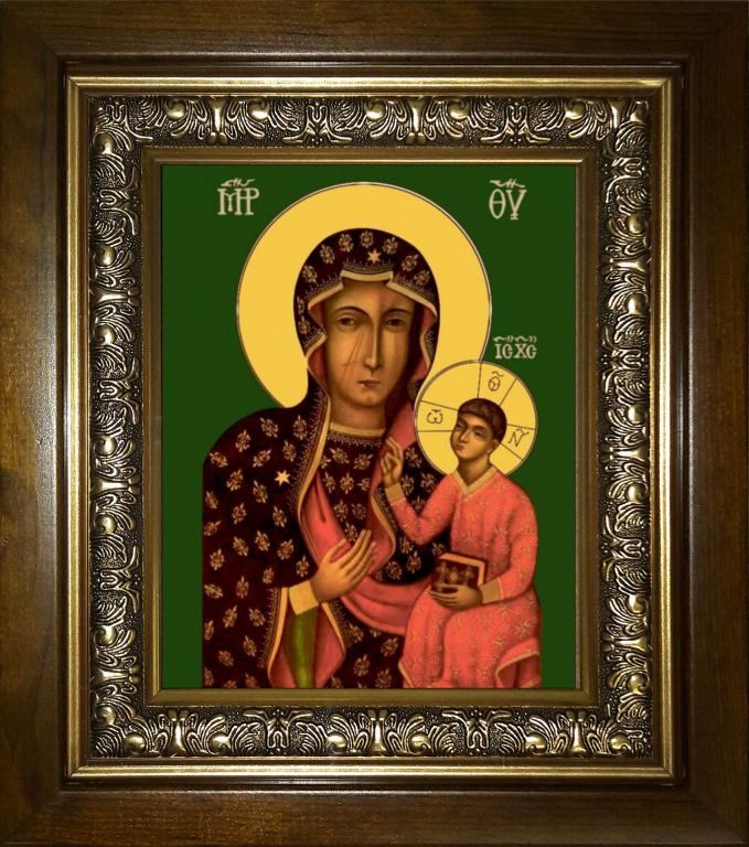 Ченстоховская икона Божией Матери 14х18 в киоте 20х24, арт. km_25_1147