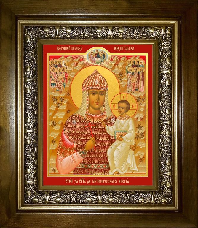 Взбранной Воеводе икона Божией Матери 14х18 в киоте 20х24, арт. km_25_1149