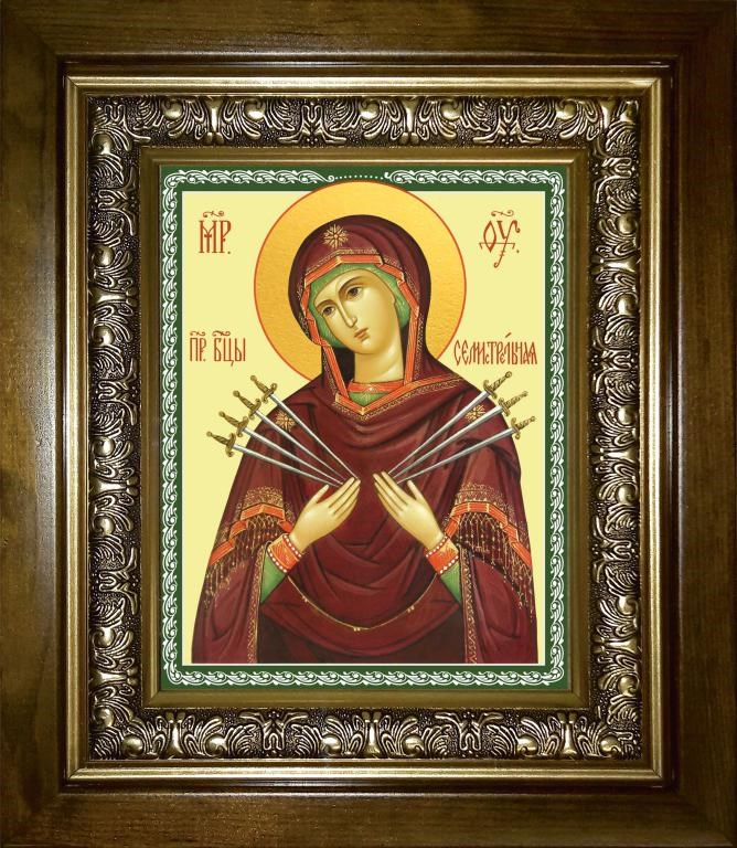 Семистрельная икона Божией Матери 14х18 в киоте 20х24, арт. km_25_126