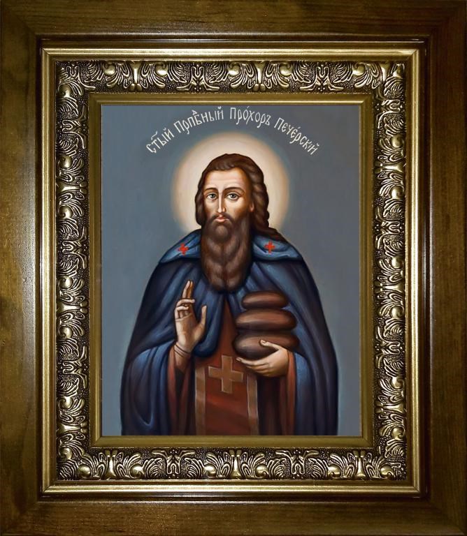 Прохор Печерский преподобный, Лебедник 14х18 в киоте 20х24, арт. km_25_1275