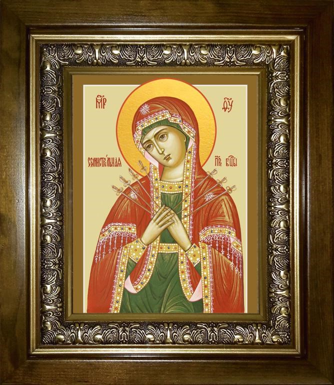 Семистрельная икона Божией Матери 14х18 в киоте 20х24, арт. km_25_130