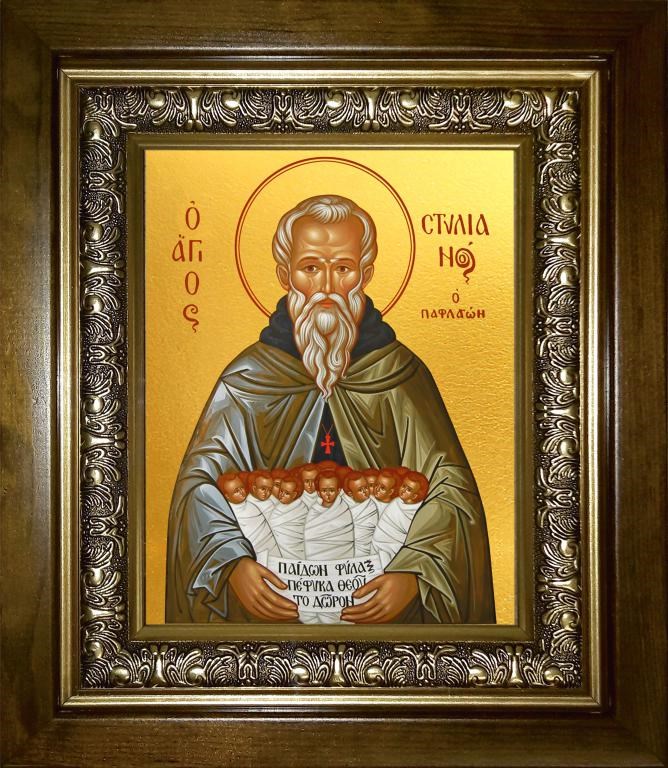 Стилиан преподобный 14х18 в киоте 20х24, арт. km_25_1297