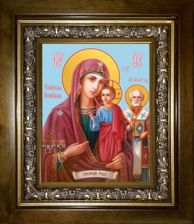 Оковецкая икона Божией Матери 14х18 в киоте 20х24, арт. km_25_1329