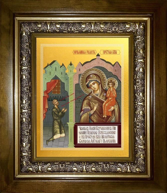 Нечаянная радость икона Божией Матери 14х18 в киоте 20х24, арт. km_25_134