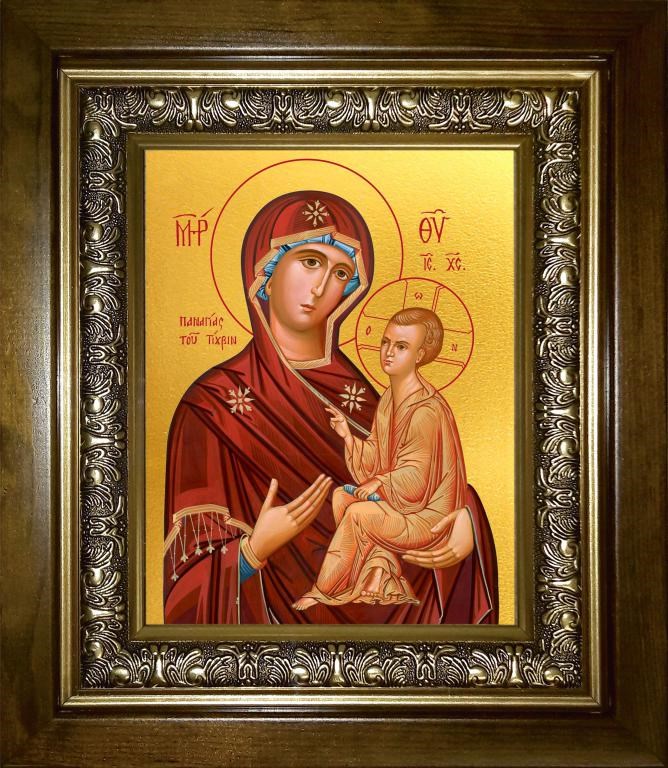 Тихвинская икона Божией Матери 18х24 в киоте 24х30, арт. km_25_1471