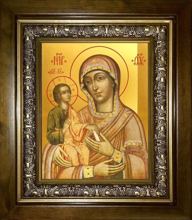 Троеручица икона Божией Матери 18х24 в киоте 24х30, арт. km_25_1474