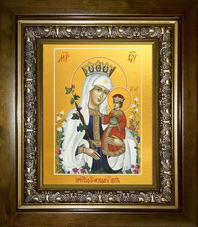 Неувядаемый Цвет икона Божией Матери 18х24 в киоте 24х30, арт. km_25_1491
