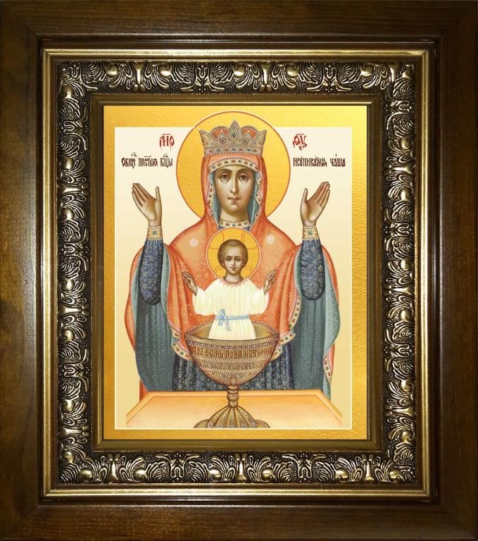 Неупиваемая чаша, икона Божией Матери 18х24 в киоте 24х30, арт. km_25_1493