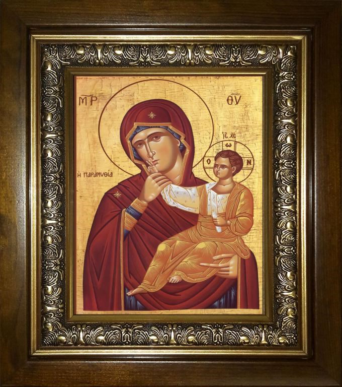 Ватопедская икона Божией Матери 18х24 в киоте 24х30, арт. km_25_1601