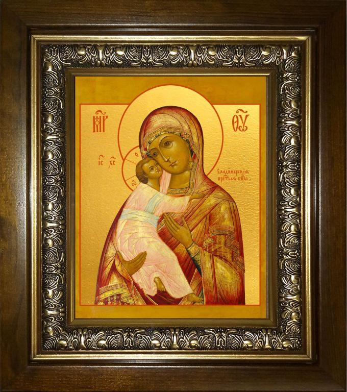 Владимирская икона Божией Матери 14х18 в киоте 20х24, арт. km_25_174
