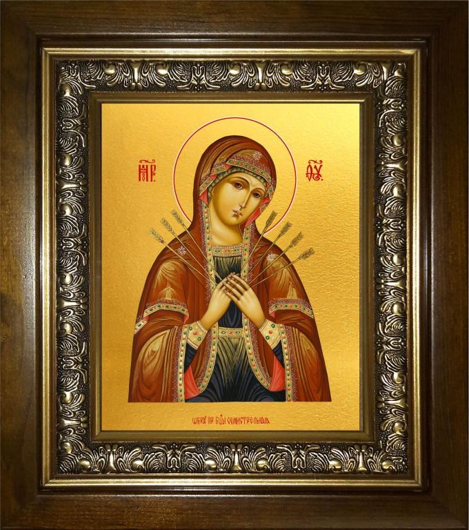 Семистрельная икона Божией Матери 18х24 в киоте 24х30, арт. km_25_1929