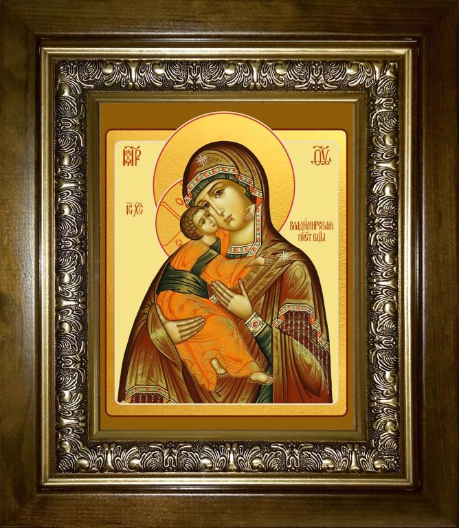 Владимирская икона Божией Матери 14х18 в киоте 20х24, арт. km_25_196