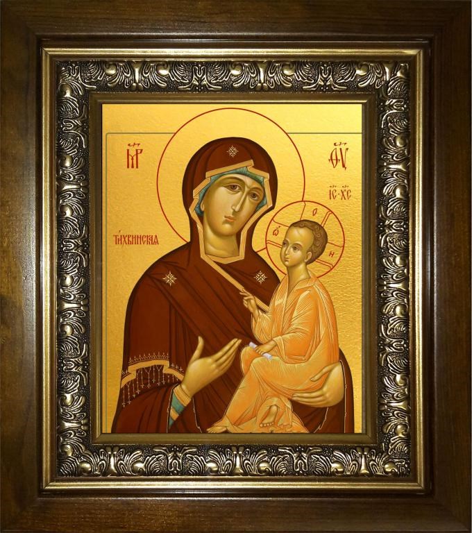Тихвинская икона Божией Матери 18х24 в киоте 24х30, арт. km_25_1983