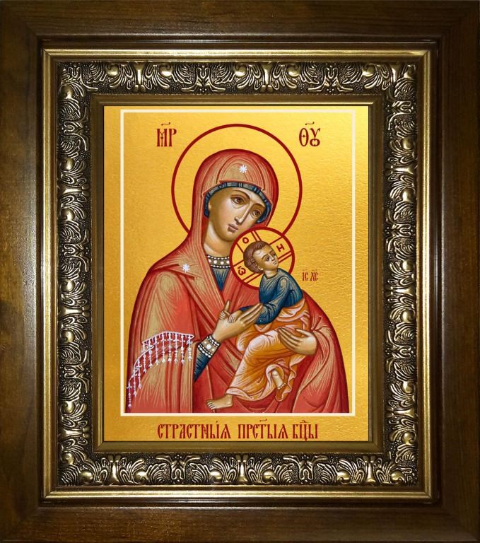 Страстная икона Божией Матери 18х24 в киоте 24х30, арт. km_25_2028