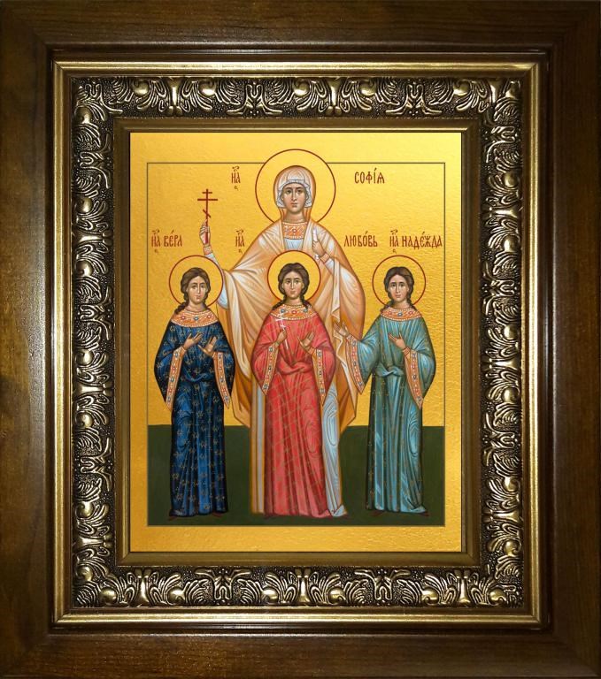 Вера, Надежда, Любовь и их матерь София мученицы 18х24 в киоте 24х30, арт. km_25_2131