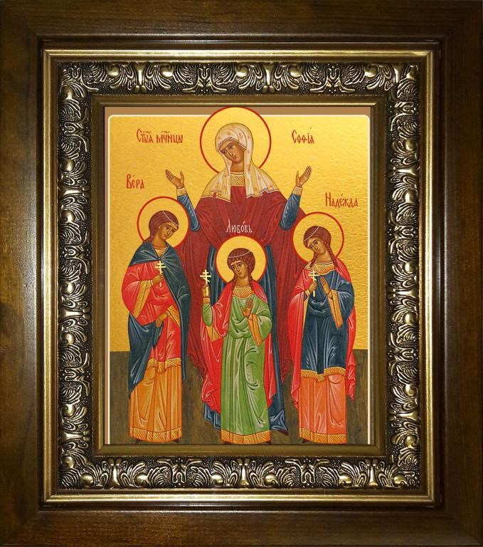 Вера, Надежда, Любовь и их матерь София мученицы 18х24 в киоте 24х30, арт. km_25_2300