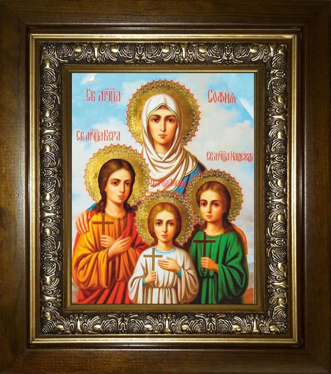 Вера, Надежда, Любовь и их матерь София мученицы 18х24 в киоте 24х30, арт. km_25_2333