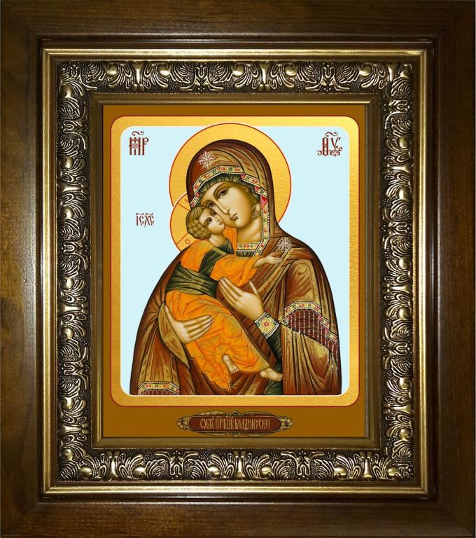Владимирская икона Божией Матери 14х18 в киоте 20х24, арт. km_25_235