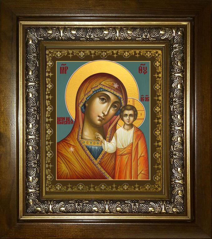 Казанская икона Божией Матери 14х18 в киоте 20х24, арт. km_25_236