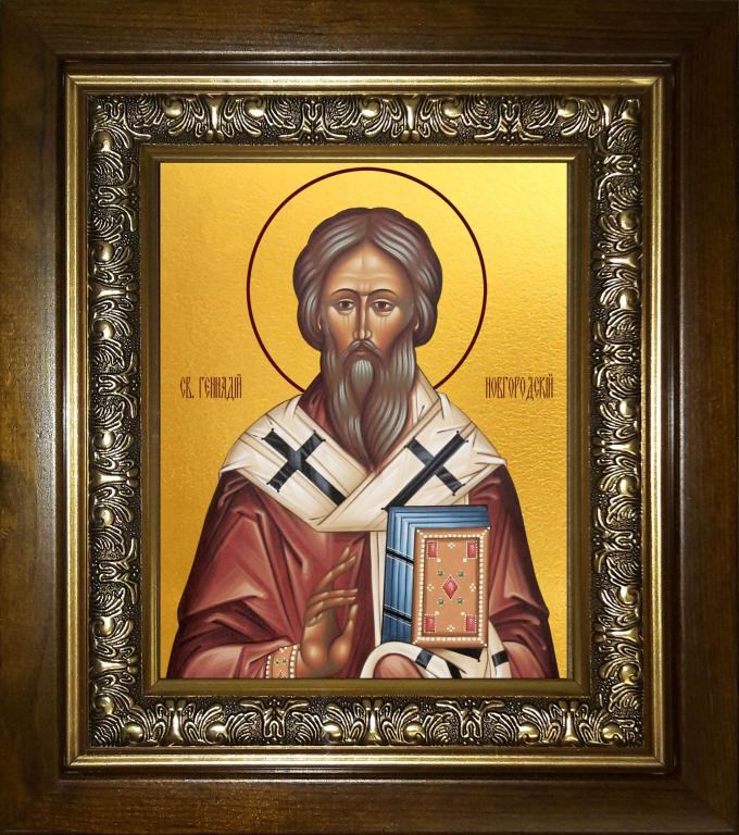 Геннадий архиепископ Новгородский, святитель 18х24 в киоте 24х30, арт. km_25_2359
