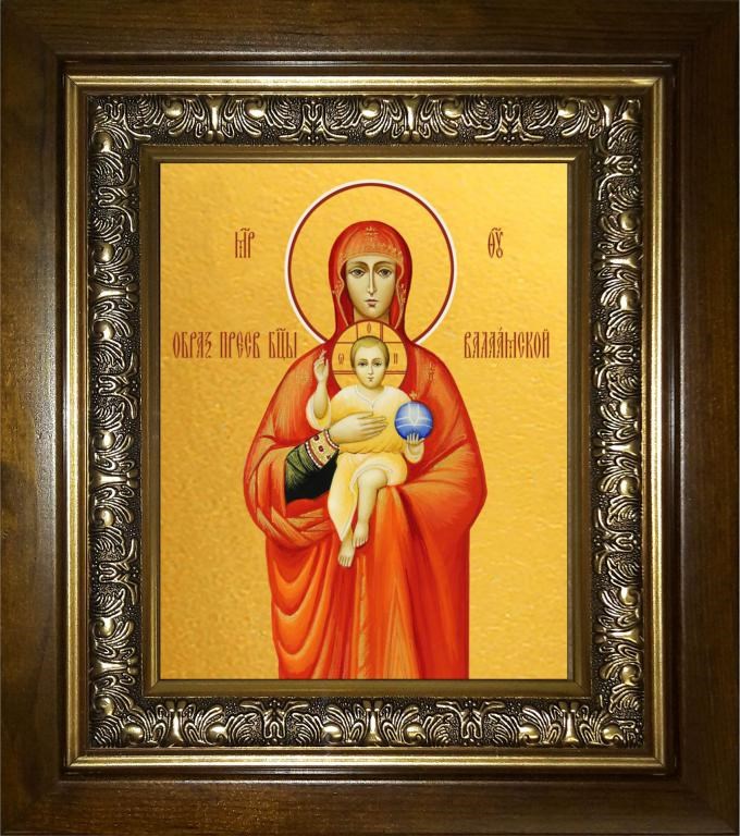 Валаамская икона Божией Матери 14х18 в киоте 20х24, арт. km_25_246