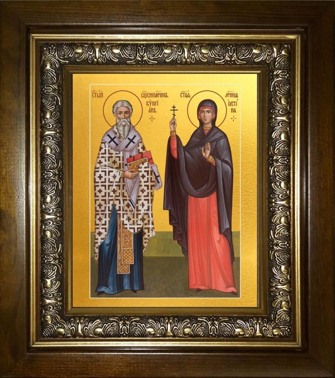 Киприан и Иустина 14х18 в киоте 20х24, арт. km_25_306