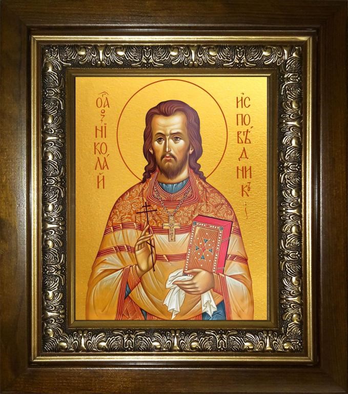 Священномученик Николай Попов, пресвитер 14х18 в киоте 20х24, арт. km_25_330