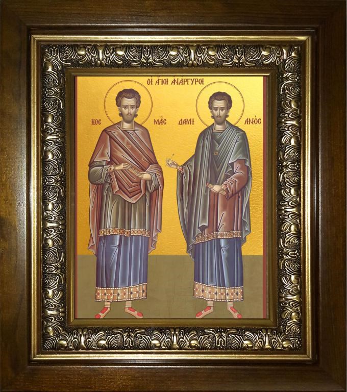 Косьма и Дамиан мученики целители бессребреники 14х18 в киоте 20х24, арт. km_25_336