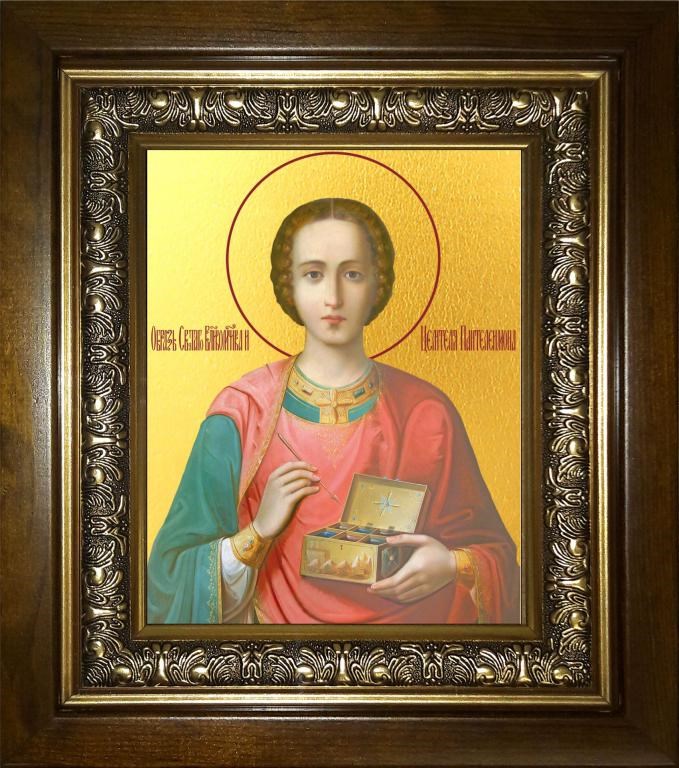 Пантелеймон ВЛКМЧ и целитель 14х18 в киоте 20х24, арт. km_25_429