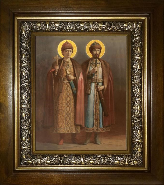 Борис и Глеб благоверные князья 14х18 в киоте 20х24, арт. km_25_432